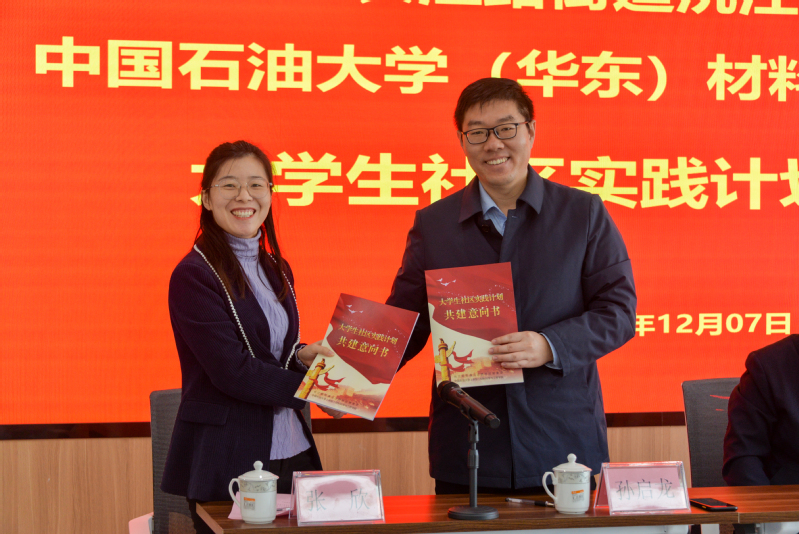 随后,孙启龙与张欣签署《老员工社区实践计划共建意向书》并合影留念。