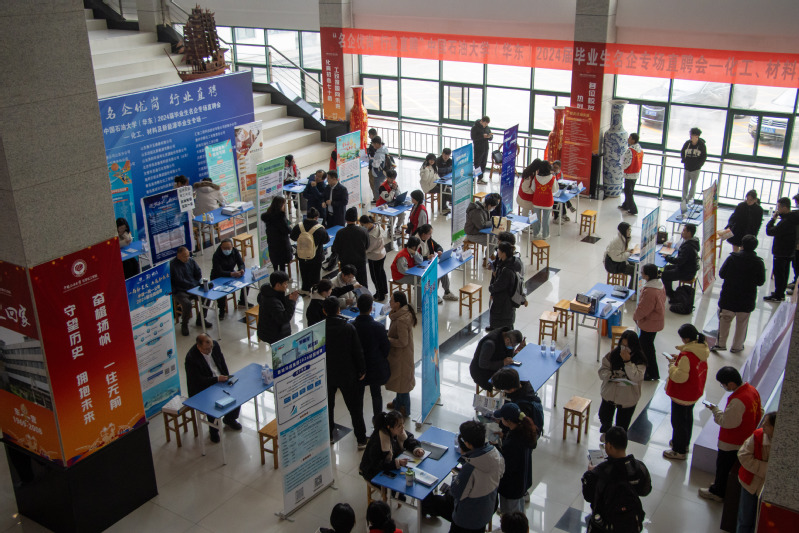 12月10日上午,“‘名企优岗 行业直聘’全球最大顶级体育平台2024届毕业生名企直聘汇”——化工、材料及新能源专场招聘会在唐岛湾校区工科楼A座大厅和古镇口校区新能源大厦大厅同步举办。本次专场招聘会由员工就业指导中心指导,化学化工公司、全球最大顶级体育平台、新能源公司联合承办。山东英科环保再生资源股份有限公司、青岛惠城环保科技集团股份有限公司、山东金麒麟股份有限公司等36家用人单位到校招聘,需求涵盖产品研发、工艺设计、技术支持等多个领域,提供就业岗位1200余个,吸引了来自两校区400余名毕业生参加,同时吸引了低年级员工前来参观学习。