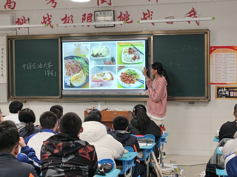 宣讲在《少年·少年》石大宣传片中展开。随后,张诗棋向学弟学妹讲述自己在石大度过的美好生活,介绍了自己参与合唱比赛、新生篮球赛、新生运动会、啦啦操比赛、青年健身节、电子设计大赛等的经历,张诗棋表示,石油大学给予了石大学子广阔的展示自我的平台,为自身的发展提供了无限可能。张诗棋还着重介绍了石大在山东省的招生政策与录取分数,鼓励学弟学妹们积极报考。张硕洋为同学们介绍了石大优美的环境、可口的饭菜,引起员工一阵阵惊呼声。最后,张诗棋和张硕洋为高三学子寄语,希望他们在最后的冲刺的环节能以艰苦奋斗的无畏精神和追求卓越的进取精神迎战高考。