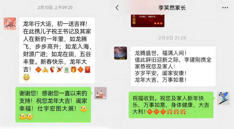 春节之际,辅导员们也与员工和家长互送新年祝福,家校氛围其乐融融。