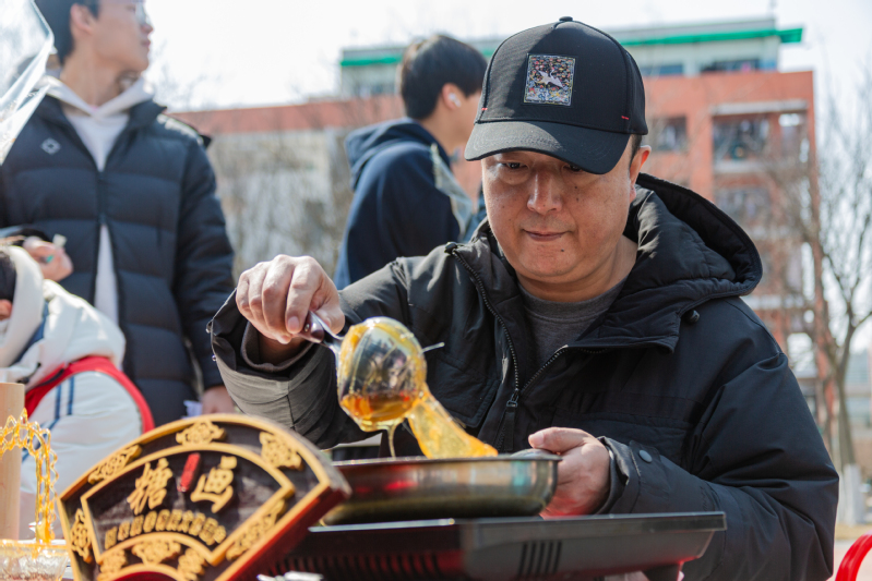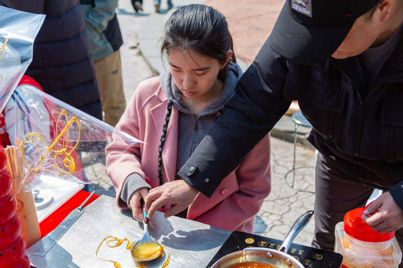 3月10日,公司员工会在荟萃广场举行“邂逅非遗,巧手匠心”思美节游园活动,活动邀请到非遗糖画的传承人林燕军老师,带领同学们走进美好的糖画时光,品味传统韵味,感受非遗之美。以勺为笔,以糖为墨,在老师精湛的手艺下,玫瑰、蝴蝶、爱心、小兔子……一幅幅活灵活现的作品烘托出节日的气氛。“以前只在电视上看到过糖画制作,这是第一次近距离感受和体验,我也充分感受到了非物质文化遗产的独特魅力。”公司2021级本研一体化班(材料类)员工杨裕在老师的指导下体验了糖画制作。