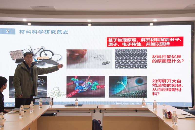活动伊始,参与员工依次进行自我介绍,相互增进了解,为活动的开展营造了一个轻松愉悦的氛围。随后,师生围绕专业认知、生活学习、未来发展等话题展开了热烈的讨论。针对员工们对专业的疑惑,李振从“对本科专业的几点认识”“材料科学研究范式”“何为材料物理”“公司材料物理专业”“材料物理前景”几个角度展开介绍,帮助员工对材料物理专业有整体的了解。他指出,材料物理专业课程覆盖理论、实验、计算、数据4大科学研究范式,夯实知识体系,培养物理思维尤为重要。谈到人工智能和传统材料研究的融合,李振表示,“拥抱人工智能,变革研究方法,才能掌握材料研发的未来。”面对员工对“材料物理”和“物理”之间关系的疑惑,王志坤解释道,“物理是工科的基石,材料物理只是将物理的研究方法与思维模式用在材料研究上,是一门以材料科学为基础,融合了数学、物理、化学、计算机等多方面知识的交叉学科。”最后,两位老师对在场员工提出建议,希望同学们能够以清醒的自我认知、坚实的专业基础以及敢想敢拼的精神来顺应瞬息万变的时代发展,拥抱充满无限可能的未来。
