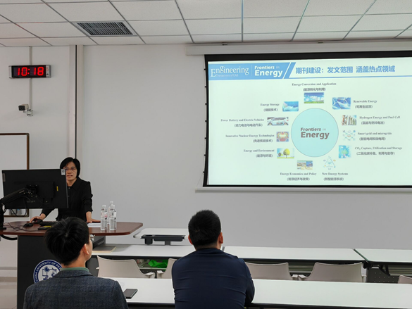 会上,刘瑞芹博士从起点定位、期刊建设、期刊特点等方面详细地介绍了Frontiers in Energy期刊,并欢迎各位老师与员工踊跃投稿。