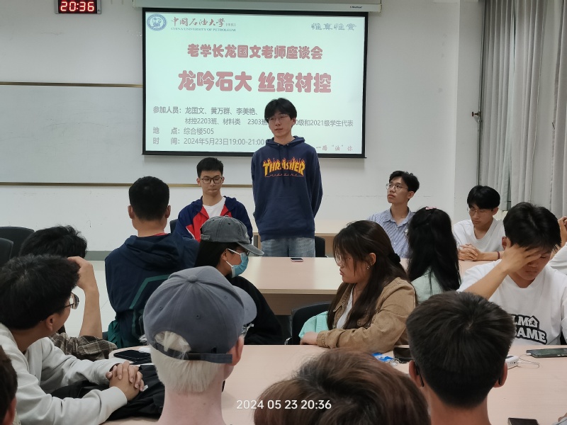 座谈会上,龙国文老师分享了他的个人求学和海外工作经历。龙老师向同学们详细地介绍了自1986年考入华东石油公司、入选俄语焊接班、赴苏联学习交流、到清华大学攻读硕士学位、被派往莫斯科石油天然气大学访问学习等经历,从焊接对我国石油行业发展的重要作用、到学俄语在石油行业对外合作交流发挥的作用,以及能源战略下对外交流和跨国石油开采中的管道运输的重要性等方面,分享了过往的坎坷经历,以及石油开采运输的相关知识。鼓励同学们在学好专业课的同时,学好外语和计算机,对未来的科研和工作能够提供重要的帮助。同时,龙老师结合当前世界格局以及对能源的迫切需求,鼓励同学们珍惜大学时光,努力学好科学技术,不怕苦不怕累,树立科技强国的理想信念。
