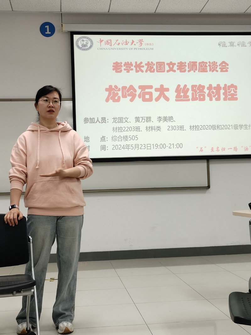 5月23日,材料科学与加工系在综合楼A505组织举办了“龙吟石大,丝路材控”主题座谈会。邀请了焊接工艺及设备专业(现 “材料成型及控制工程”专业)第一届(1990届)“老学长”龙国文老师为材料类2303班、材控2203班、2021级和2020级员工代表分享个人学习及工作经历,座谈会由材控2203班主任黄万群老师主持。