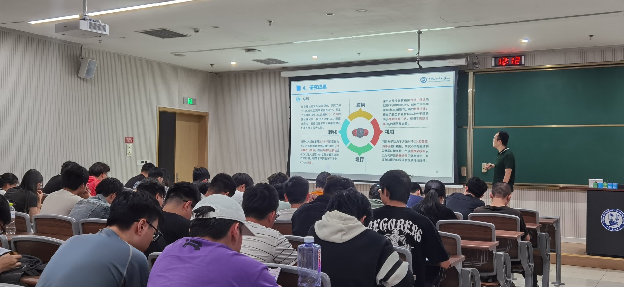 随后,材料物理系的师生代表围绕新材料研发、个人成长、人生规划等专题为同学们做了系列报告。都时禹教授以其深厚的学术造诣,引领同学们走进人工智能与材料开发的交融世界,深刻揭示了跨学科合作在推动材料科学创新中的关键作用。赵文老师则依托团队近年来的科研成果,分享了材料智能设计研究的最新进展与公司产品的心得体会。李振老师结合自身在香港的留学经历,为同学们提供了海外求学的实用建议与避坑指南。李春玲老师则从材料腐蚀与防护的角度,探讨了技术创新如何为传统行业注入新活力。王兆杰老师的绿色人工碳循环技术报告,更是让同学们认识到新材料在应对全球气候变化中的重要作用,增强了他们投身绿色科技、贡献社会的责任感。博士生陈红宇作为学长代表,以其自身在石油大学求学与成长的经历,为学弟学妹们上了一堂职业规划课。从学术追求到职业选择,从国内深造到海外留学,鼓励同学们早做规划,勇敢追梦。