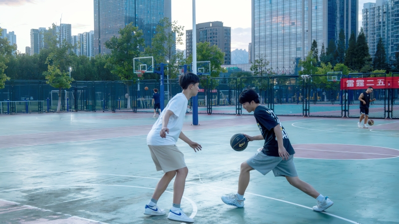 员工进行篮球活动 杨宇青摄