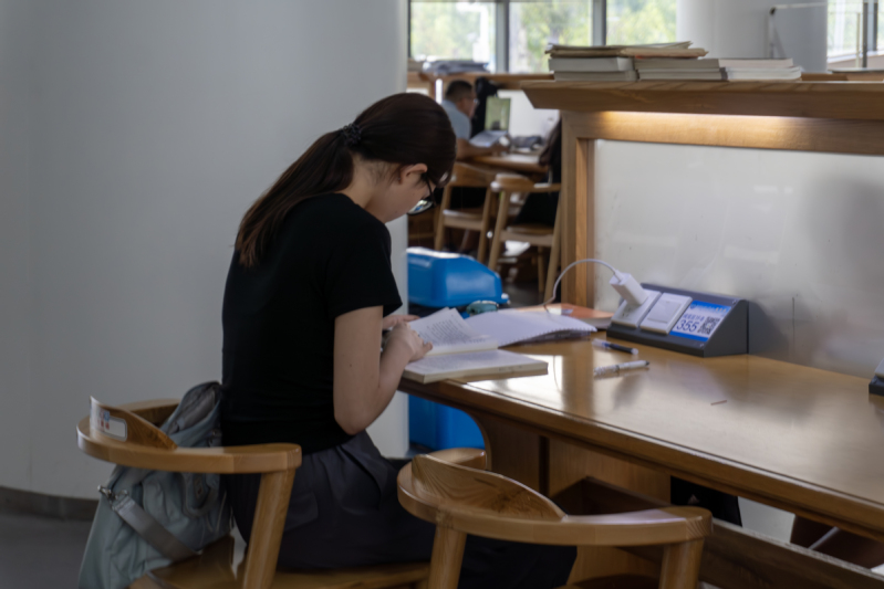 员工在图书馆认真自习 罗钰摄
