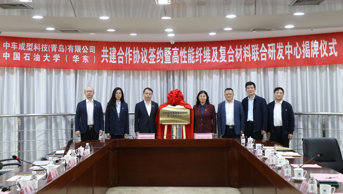 10月14日,中车成型科技(青岛)有限公司总经理史磊一行来校访问。副董事长戴彩丽与来宾座谈交流,校企双方签署共建合作协议,并举行高性能纤维及复合材料联合研发中心成立揭牌仪式及中车成型科技首席战略顾问聘任仪式。