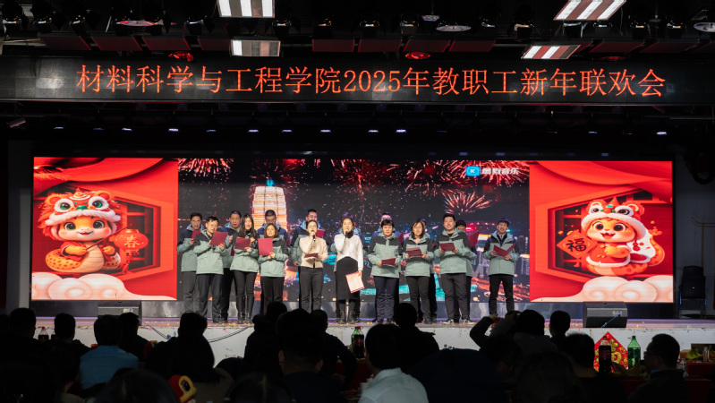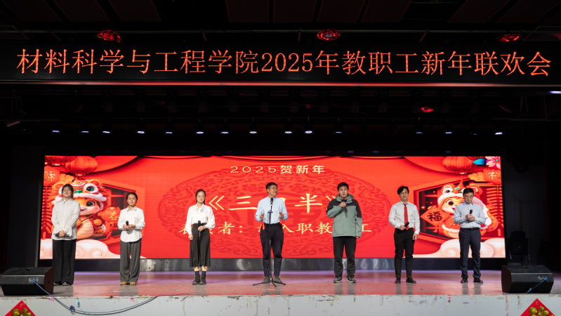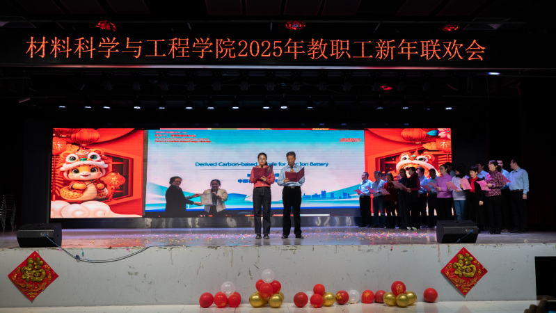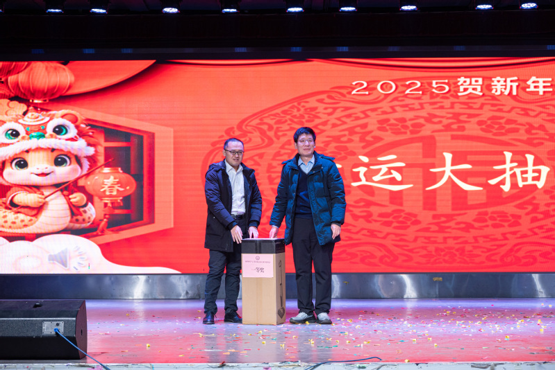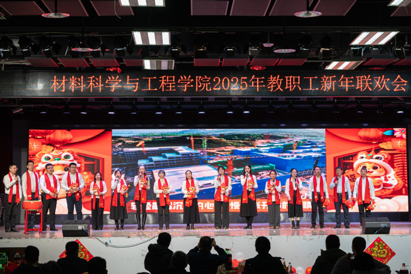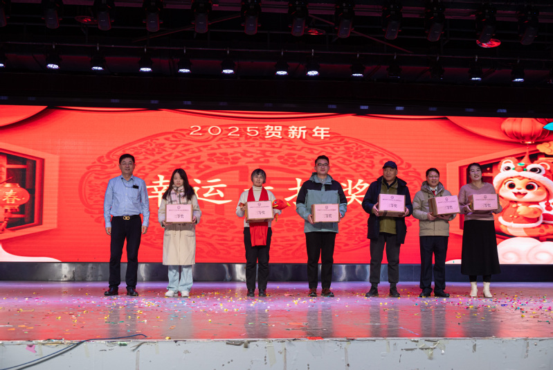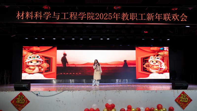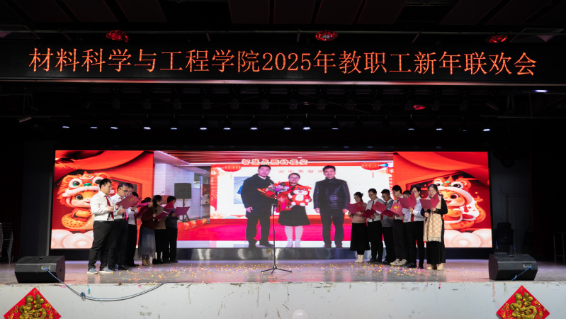 总结表彰大会结束后,新年联欢会在新入职教师带来的《三句半》中拉开序幕,以独特、幽默的方式展现了他们对工作的热情和为公司发展作出贡献的决心;材料物理系老师带来的歌曲《欢乐中国年》旋律轻快,营造了欢快喜庆的氛围;新能源材料系老师带来的歌曲《如愿》,带领现场观众共同感悟跨越山河、世代相传的赤子之心;公司办公室老师以歌曲联唱《男儿当自强+明天会更好》,展现出了材料人勇毅前行向未来的担当与振奋;材料化学系带来的歌曲《相亲相爱》,彰显了材料公司大家庭的团结精神;本研材料2401班的胡皖青以一首悠扬婉转的《阿刁》,唱出了材料学子的坚毅无畏与英气傲然;材料科学与加工系老师带来的歌曲联唱《童年+让我们荡起双桨+送别》,带领现场观众重温童年的美好时光,在歌声中寻找纯真与快乐;公司特聘教授刘营带来歌曲《呼伦贝尔大草原》,歌声浑厚深沉、悠扬朴实,仿佛带领观众走进辽阔壮美的大草原。精彩的节目中穿插了抽奖互动环节,现场气氛活跃、其乐融融。