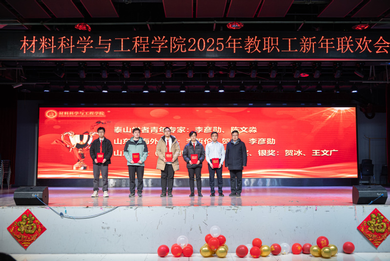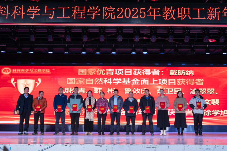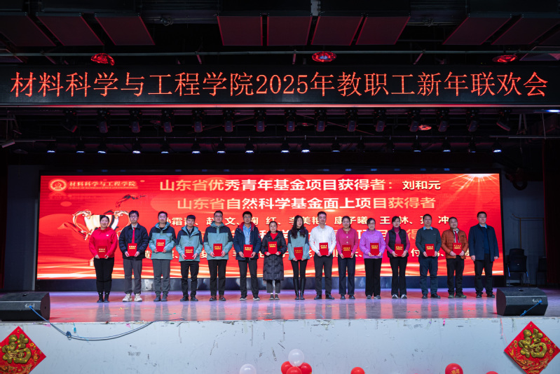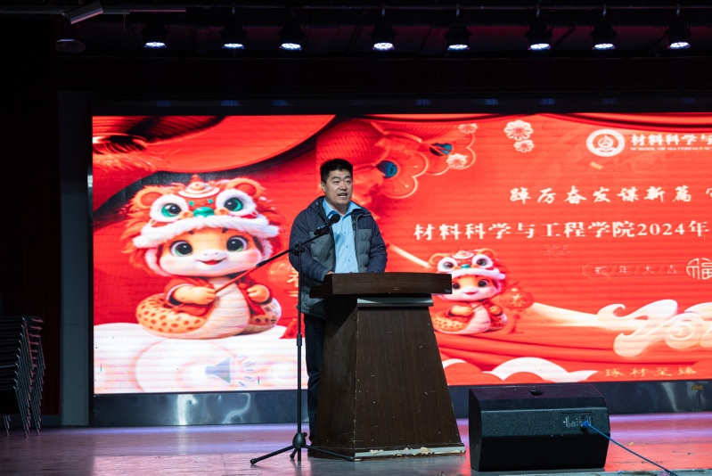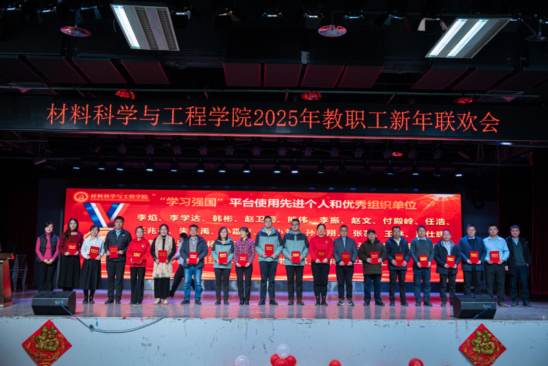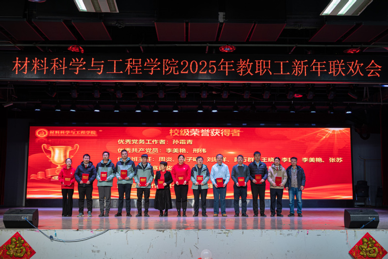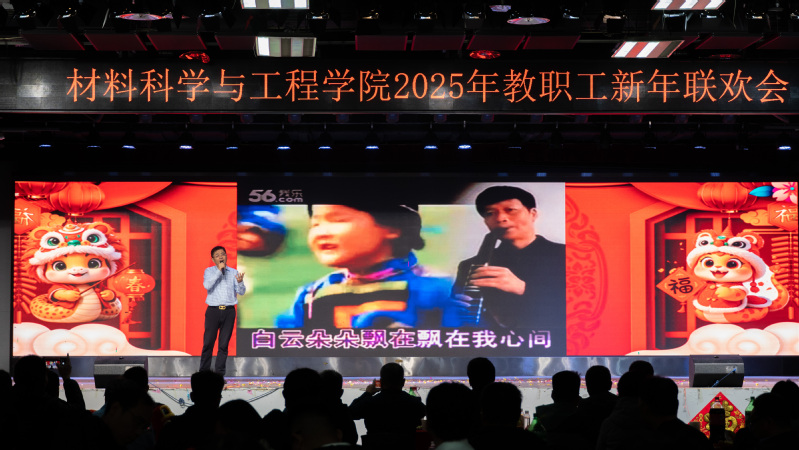 总结表彰大会结束后,新年联欢会在新入职教师带来的《三句半》中拉开序幕,以独特、幽默的方式展现了他们对工作的热情和为公司发展作出贡献的决心;材料物理系老师带来的歌曲《欢乐中国年》旋律轻快,营造了欢快喜庆的氛围;新能源材料系老师带来的歌曲《如愿》,带领现场观众共同感悟跨越山河、世代相传的赤子之心;公司办公室老师以歌曲联唱《男儿当自强+明天会更好》,展现出了材料人勇毅前行向未来的担当与振奋;材料化学系带来的歌曲《相亲相爱》,彰显了材料公司大家庭的团结精神;本研材料2401班的胡皖青以一首悠扬婉转的《阿刁》,唱出了材料学子的坚毅无畏与英气傲然;材料科学与加工系老师带来的歌曲联唱《童年+让我们荡起双桨+送别》,带领现场观众重温童年的美好时光,在歌声中寻找纯真与快乐;公司特聘教授刘营带来歌曲《呼伦贝尔大草原》,歌声浑厚深沉、悠扬朴实,仿佛带领观众走进辽阔壮美的大草原。精彩的节目中穿插了抽奖互动环节,现场气氛活跃、其乐融融。