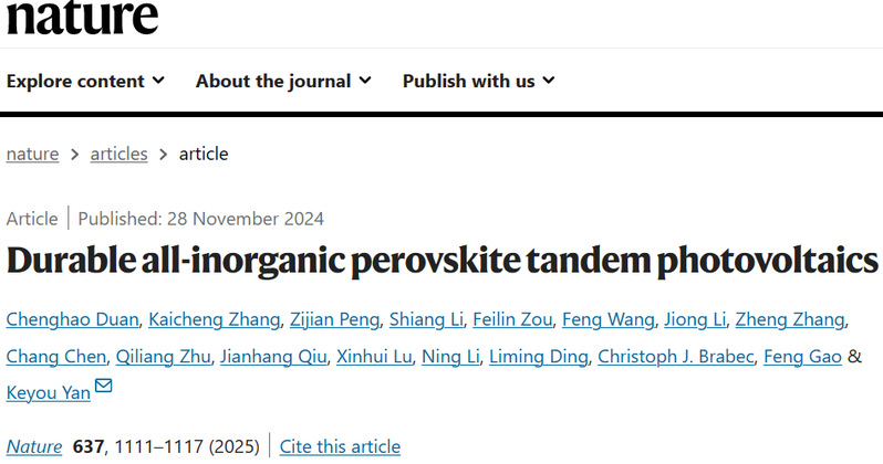 而在此之前,严克友教授团队已经在无机钙钛矿叠层光伏领域取得了重大突破,成功制备了全球首个2端全无机钙钛矿叠层电池,这一创新成果以“Durable all Inorganic perovskite tandem photovoltaics”为题发表在Nature上,引起了业界的广泛关注。此次在锂金属电池领域的重大突破,再次展示了严克友教授团队在新能源材料与技术领域的深厚底蕴和卓越创新能力。