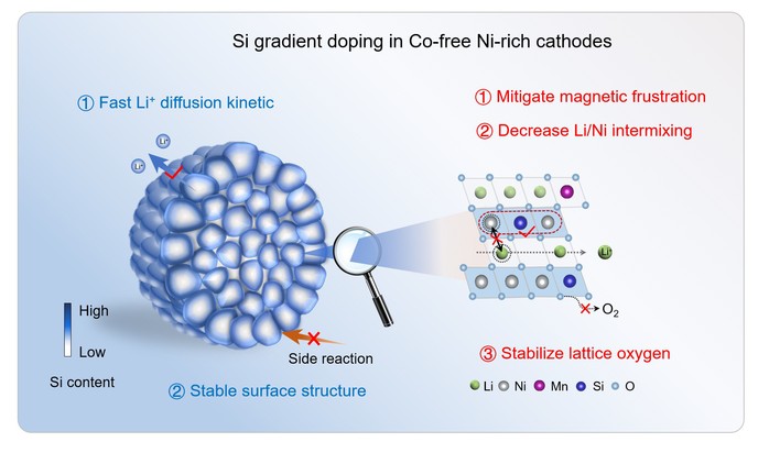 (3) 非磁性Si元素梯度掺杂缓解无钴高镍正极材料动力学迟滞