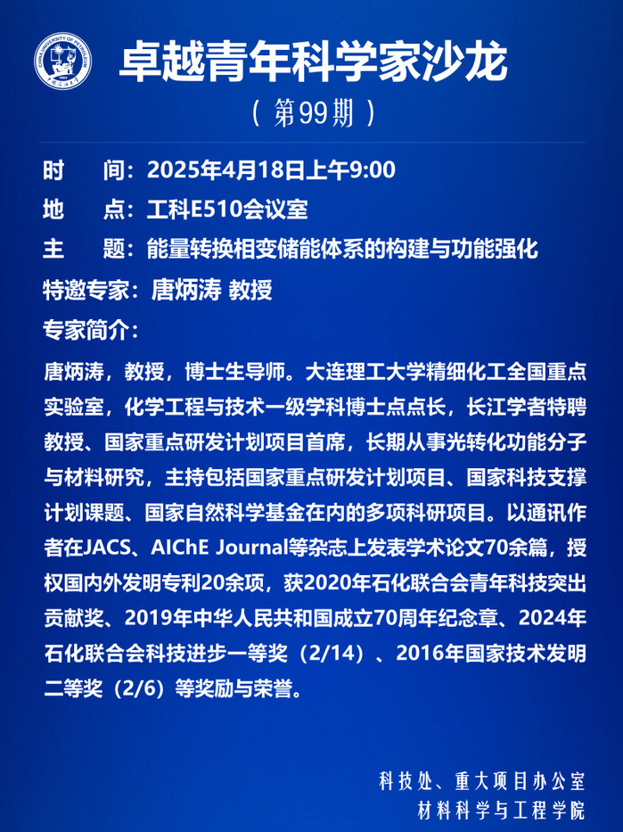 【学术报告预告】能量转换相变储能体系的构建与功能强化