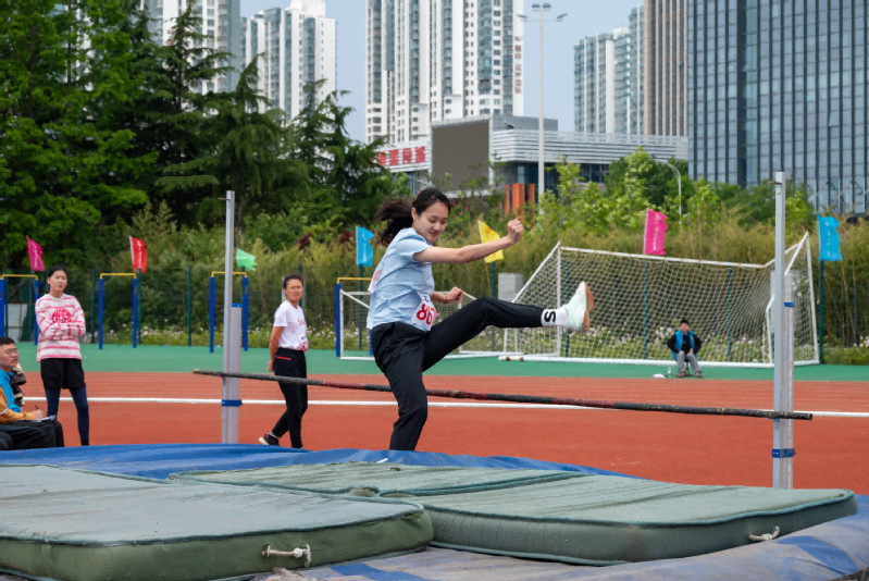 赵思琦参加员工女子甲组跳高比赛 唐雨虹摄