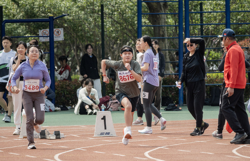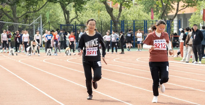 周容老师参加教工女子丙组100米比赛 杨宇青摄
