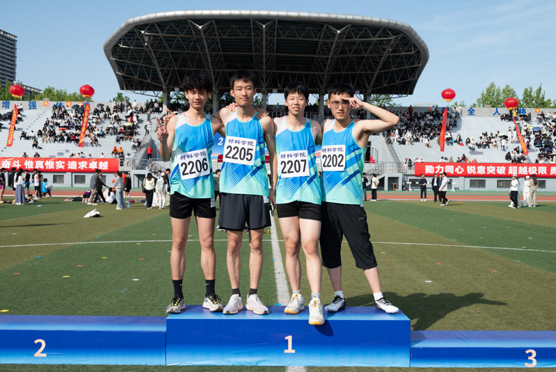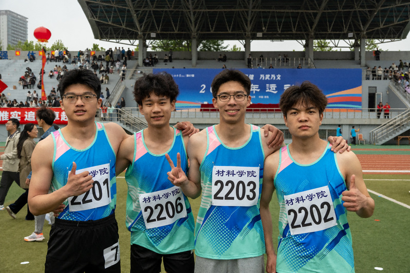 李庚昊、陈禹潼、孙睿、闵锐员工男子甲组4x100米接力合影 赵晨阳摄