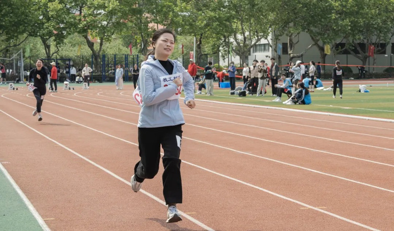 关景怡老师参加教工女子丙组200米比赛 唐雨虹摄