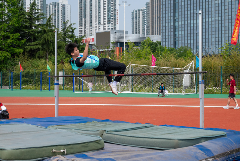 刘少伟老师参加教甲组跳高比赛 唐雨虹摄
