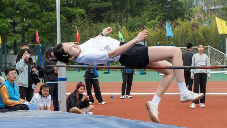 马晓晨老师参加教工女子丙组跳高比赛 罗钰摄