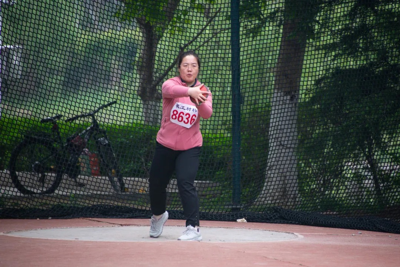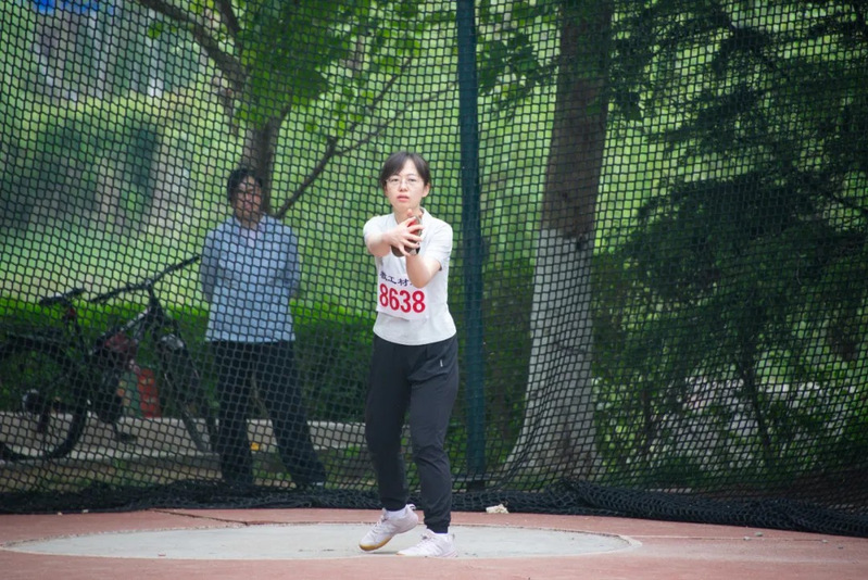 王佳老师参加教工乙组铁饼比赛 张菀倪摄