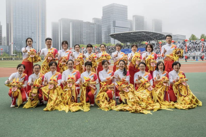 参加教职工彩带龙表演的教师合影 杨宇青摄