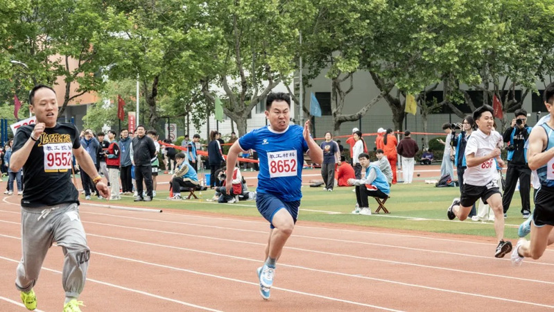 刘思远老师参加教工男子丙组100米比赛 杨宇青摄