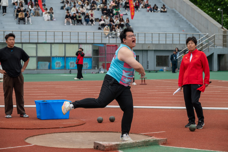 周欣明老师参加教工甲组铅球比赛 温道龙摄