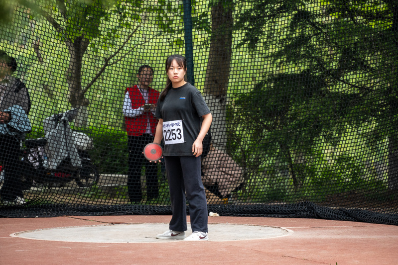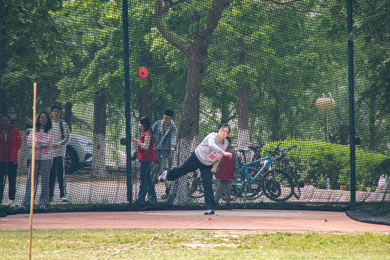 鞠虹老师参加教工甲组铁饼比赛 张文昊摄