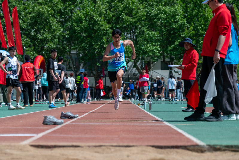 陆彦潼参加员工男子乙组三级跳比赛 罗钰摄
