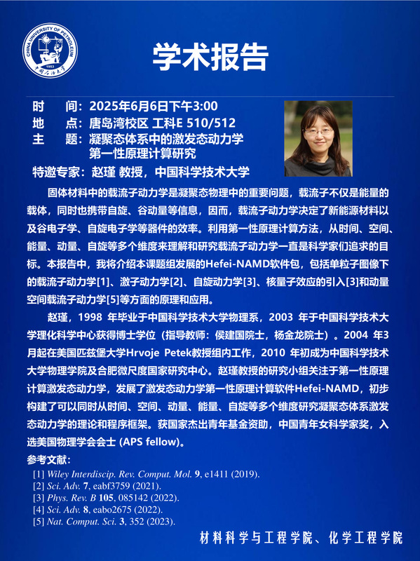 【学术报告预告】凝聚态体系中的激发态动力学 第一性原理计算研究