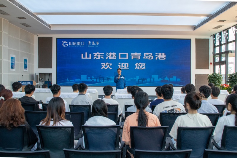 随后,学员在报告厅观看了山东港口宣传片和自动化码头宣传片,了解了自动化码头自主创新、突围破壁的建设历程。来到观景平台,全球首个“氢+5G”智慧生态码头尽收眼底——无人导引车穿梭自如,巨型桥吊精准抓放集装箱,数字化系统高效调度。学员们凝视着这座用中国智慧托起的“科技港口”,对科技报国的内涵有了直观而具象地理解。