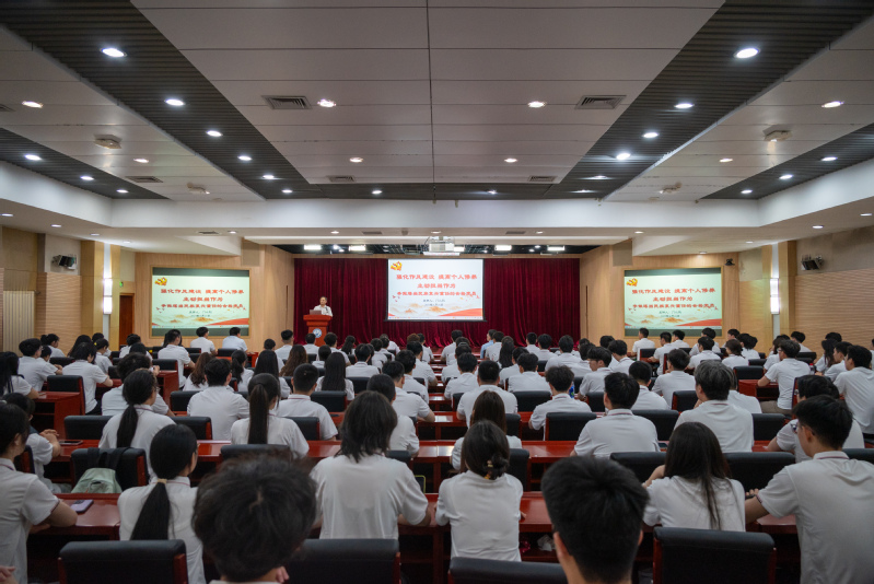 门小刚书记在唐岛湾校区为全体本科毕业生党员讲授题为《强化作风建设,提高个人修养,主动担当作为,争做堪当民族复兴重任的合格党员》专题党课,从“习近平总书记关于全面从严治党的重要论述”、“深入贯彻中央八项规定精神学习教育的主要内容”、“做堪当民族复兴重任的合格党员”三个方面进行了深入浅出的讲解。门小刚书记寄语全体毕业生党员要立志成为政治站位高、家国情怀高、学术学识高、格局视野高、领导能力高的“五高”人才;要坚持“慎独、慎微、慎言、慎行”,提升个人修养;要构筑“主动而为、成熟理性、问题导向、系统理念”思维,成就美丽人生。