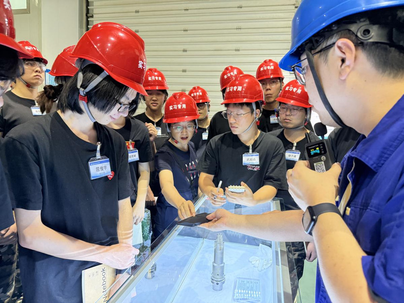 在专业实习方面,公司大力推行“工程综合训练与创新—专业认识实习—专业生产实习”的实践教学模式,实现大一至大三年级员工全覆盖。2025年,公司组织700余名员工走进海洋石油工程(青岛)有限公司、青岛能源集团、青岛中邦新材料科技有限公司等30余家企业进行认识实习和专业实习,涉及石油石化、智能科技、汽车制造和新材料等多个领域,引导员工全面了解行业发展趋势,锻炼员工的综合素养和解决复杂工程问题的能力。材料化学专业2024级本科生孙睿表示:“通过本次认识实习,我第一次走进专业相关企业进行参观学习,观察了解到各类材料在典型工程结构中的选择、加工工艺、质检和装配操作,未来,我希望可以将我的所学应用于国家所需,为材料强国建设贡献一份力量。”