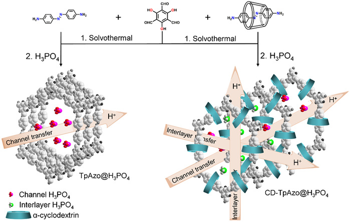 2. 通过轮烷结构调节二维共价有机框架的层间相互作用和质子传导路径