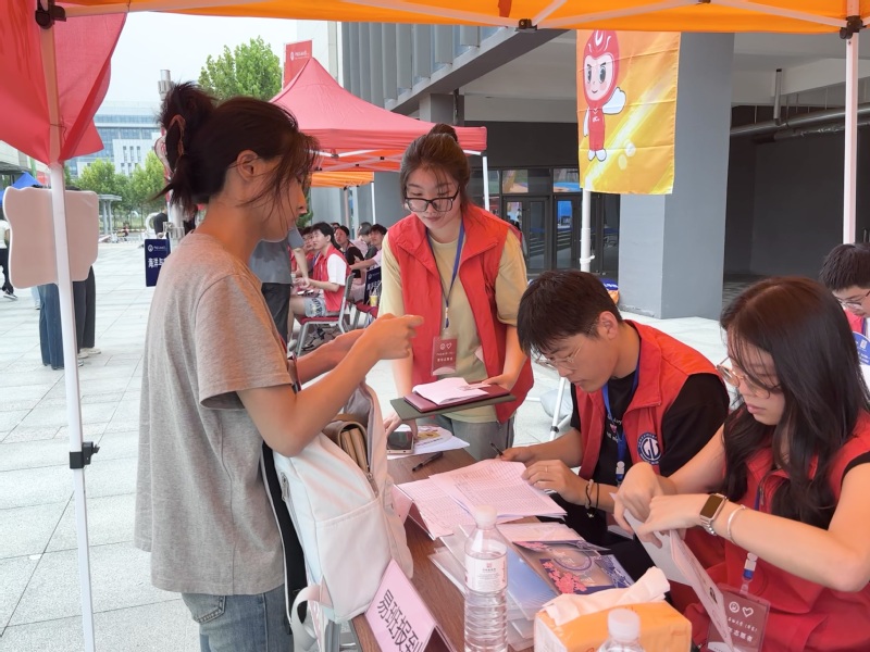 唐岛湾校区志愿者为新生办理报到手续 张文昊摄