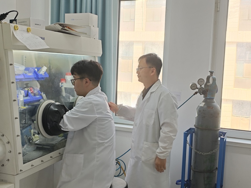 邢伟教授在实验室指导员工开展实验