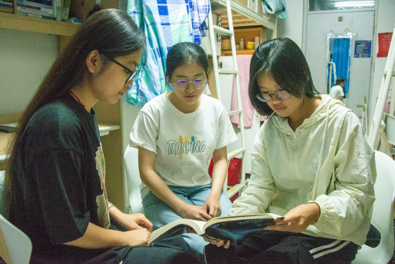 研究生在工作室阅读文献