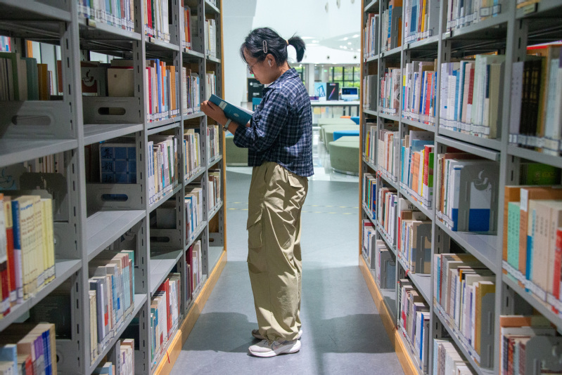 员工在图书馆自习