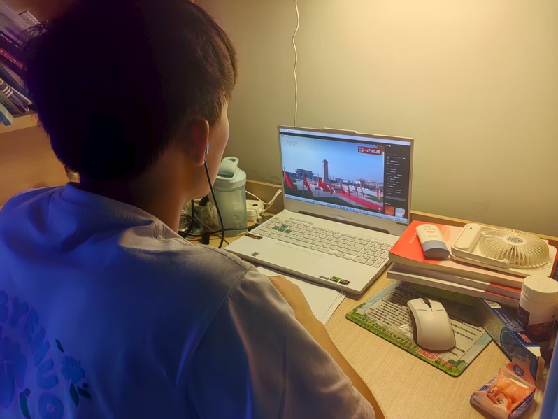 员工在宿舍自行观看纪念大会 齐禹涵摄