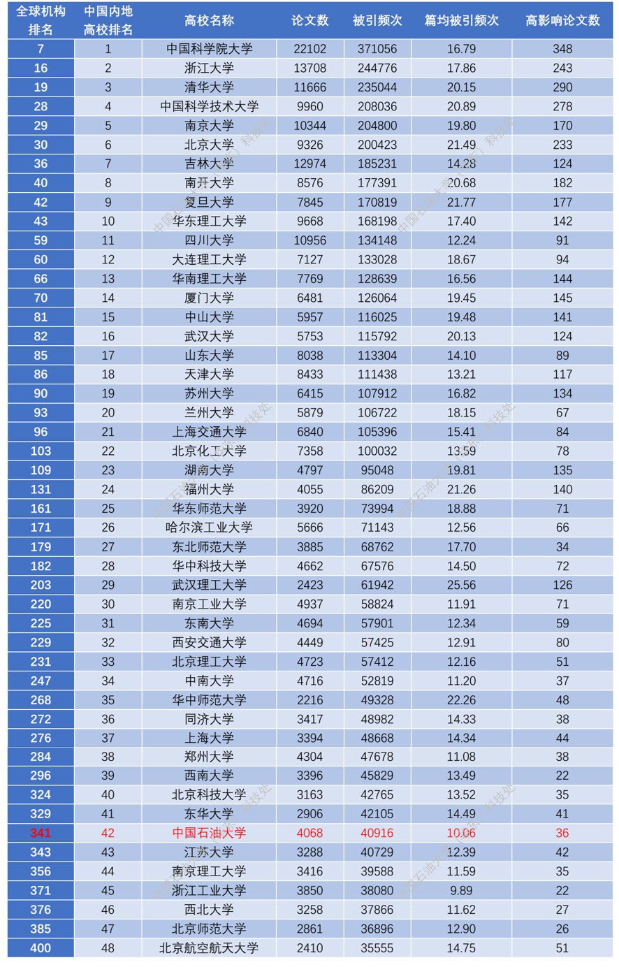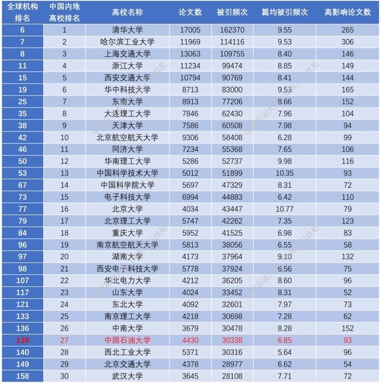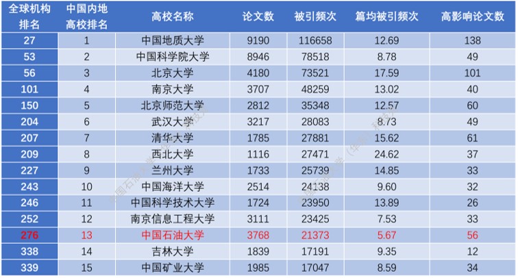 一、中国石油大学ESI学科的全球机构排名与中国内地高校排名动态