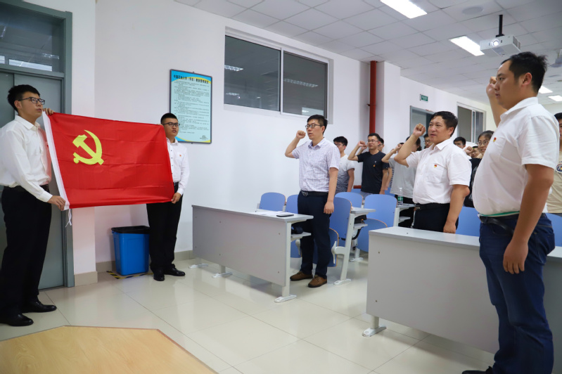 课程学习结束后,优秀员工党员代表卜红梅发表感言,她指出作为员工党员我们应当在政治上保持先进性,在学习上潜心科研、在工作上勇敢担当,拥有领袖意识、勇于承担责任,做一个“讲政治,有担当,追求卓越的材料人”,为建设国内一流、有重要国际影响的研究型公司而努力奋斗。接着,门小刚同志发表了“传承红色基因,牢记初心使命”主题教育讲话。他在讲话中指出,青年员工党员要树立“四个意识”,坚定“四个自信”,要发挥党员模范带头作用,做好各党支部的战斗堡垒作用。最后,徐拥军带领全体党员重温入党誓词,本次活动在宣誓声中圆满结束。